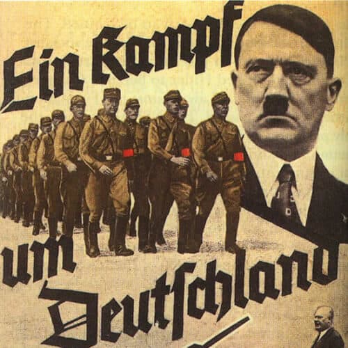 "Kampf" might be a familiar word to you. Hitler's book was titled Mein Kampf -- "my struggle." But this struggle was Germany's struggle: "Ein Kampf um Deutschland."